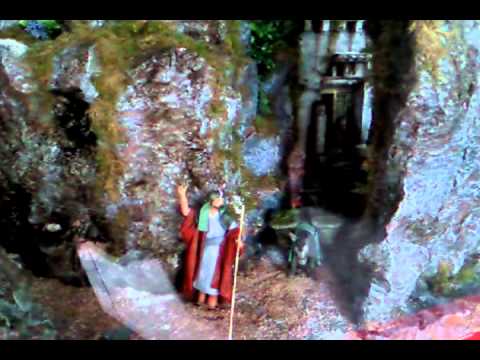 Belén instalado en los escaparates del centro comercial, en Avda de la Libertad, Murcia, compuesto de 200 piezas de barro lienzado y de estilo hebrero.