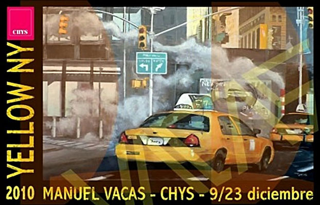 Manuel Vacas nos propone un homenaje a la pintura urbana y a la ciudad de Nueva York. Esta hermosa ciudad donde nadie es extranjero, donde las historias se mezclan en aceras y paseos, en coches y calles, donde el color amarillo nos acompaña por todas partes, decorándola con una estética que la identifica y la hace única. Como reza en su catálogo: "Para un pintor de lo urbano, Nueva York ejerce el más irresistible de los atractivos. . . que se puede decir del maravilloso hechizo del color, de la irresistible estética del asfalto, del enigma del paseante desconocido, una historia en cada esquina". Vacas trabaja el color y las formas para extraer la imagen de un momento concreto y deja que sea el espectador el que monte la historia.